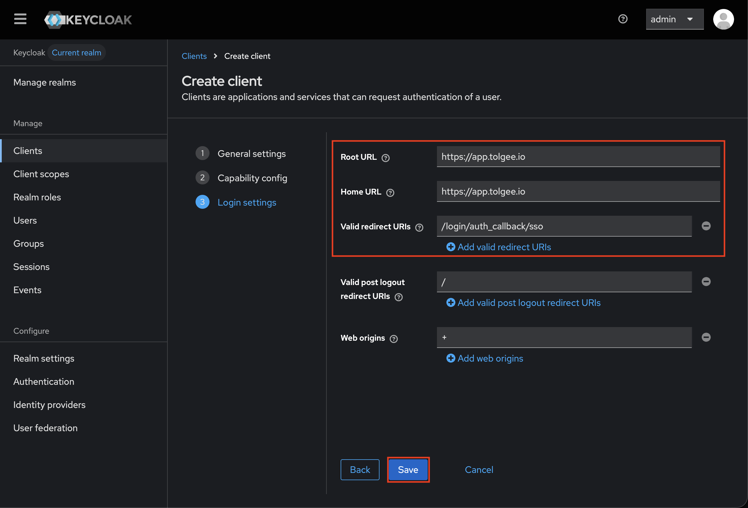 /login/auth_callback/sso- This is the callback URL where Keycloak will redirect users after successful authentication.